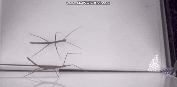 他们发现竹节虫主要呈现出三足步态模式,同时抬起三只腿。有时又转变为四足步态,即只有两只腿同时移动。它们虽然几条腿长得参差不齐,但优点是每条腿都有独特的功能。比如前腿可以除了走路还可以用来做触角,感受地面凹凸不平(真正的触角很短,眼神也不好使,没办法)。在行走时前腿会试探性地伸出去,而且抬得比较高。在不同的路面上行走,它们的步态是不一样的。如果是走在天花板上,为了避免自己掉下来,竹节虫就要保证行走时有足够多条腿与天花板接触,它会从三足步态(三条腿接触)转变为四足步态(四条腿接触)或五足步态(五条腿接触)。