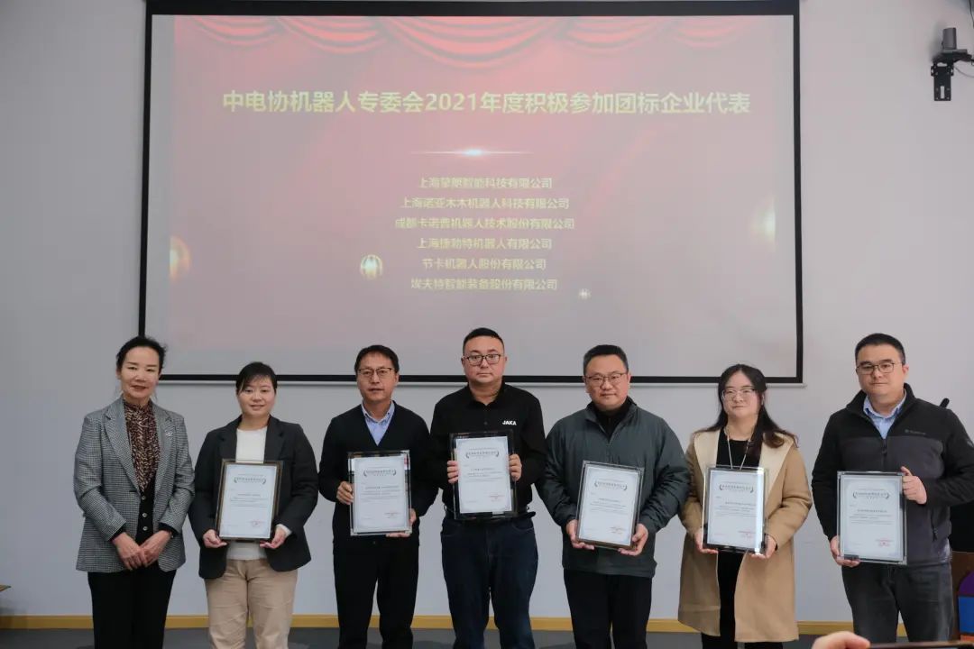 为鼓励和感谢大家对中电协机器人专委会工作的关注和支持,会上向“2024年度优秀委员”中家院(北京)检测认证有限公司王曦、上海擎朗智能科技有限公司刘斐颁发了优秀委员证书,向团体标准积极参与单位颁发了参编证书。