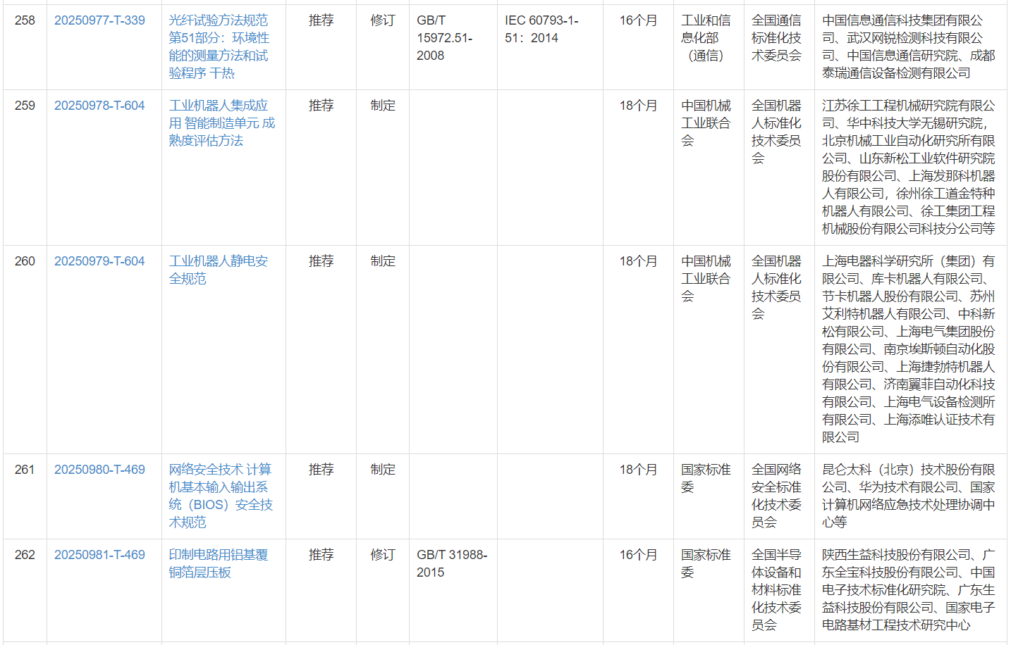 2025年3月27日,国标委发[2025]12号,国家标准化管理委员会下达了关于国家标准《工业机器人静电安全规范》等推荐性国家标准计划。