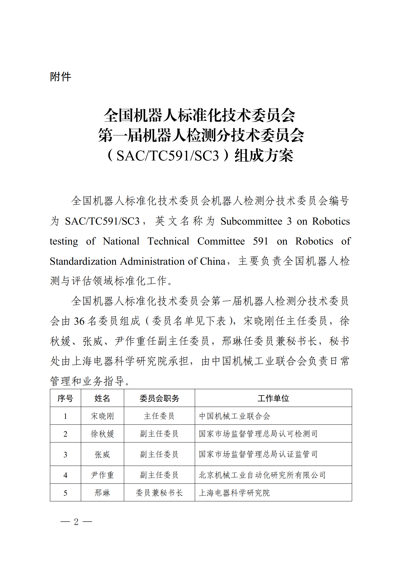 5月9日,国家标准化管理委员会发布《关于成立全国机器人标准化技术委员会机器人检测分技术委员会的公告》,决定成立全国机器人标准化技术委员会机器人检测分技术委员会(以下简称:分技术委员会),主要负责全国机器人检测与评估领域标准化工作,秘书处由上海电器科学米兰·(milan)中国承担,我院专家邢琳任委员兼秘书长。