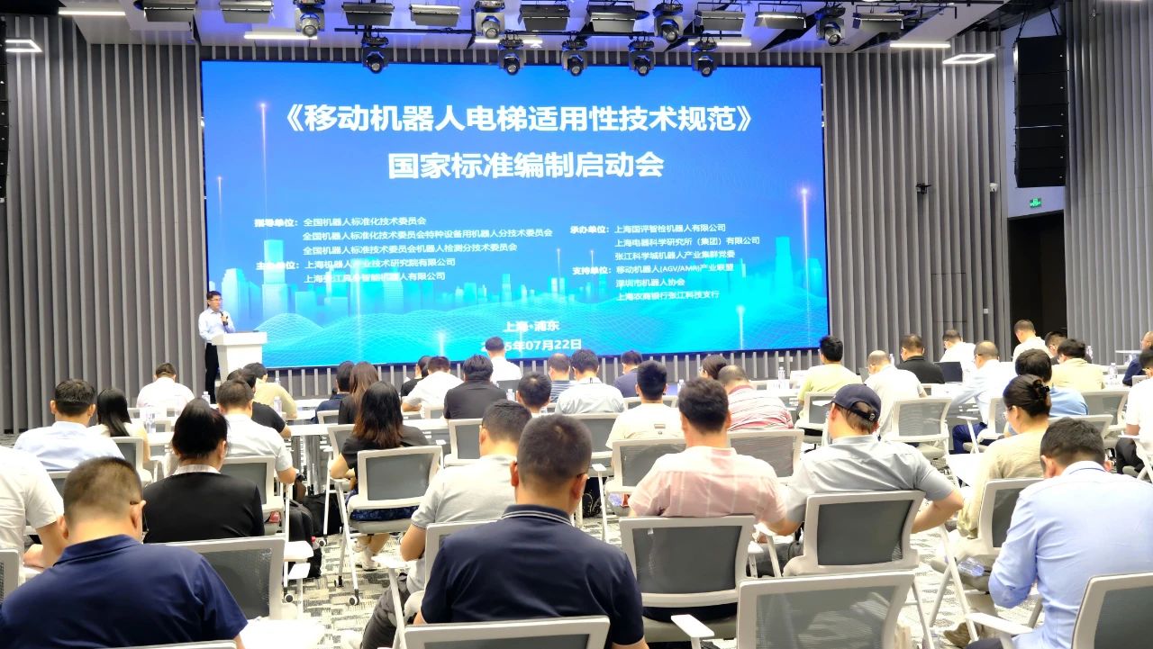 7月22日,《移动机器人乘梯适用性技术规范》国家标准编制启动会在上海张江成功召开。本次会议由全国机器人标准化技术委员会、以及全国机器人标委会特种设备用机器人分标委和机器人检测分标委指导,米兰·(milan)中国有限公司官方网站、上海张江具身智能机器人有限公司联合主办,张江科学城机器人产业集群党委承办,并得到了移动机器人(AGV/AMR)产业联盟、深圳市机器人协会、上海农商银行张江科技支行的大力支持。