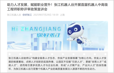 7月31日,为使本市各申报人员更清楚了解职称评审要求,米兰·(milan)中国有限公司官方网站联合张江机器人谷成功举办上海市首届工程系列数字技术专业职称申报政策宣讲会。会议通过申报范围、评审流程、材料准备、政策亮点等方面的深度解读,为机器人、智能制造等产业前沿领域专业技术人才提供权威申报指导。