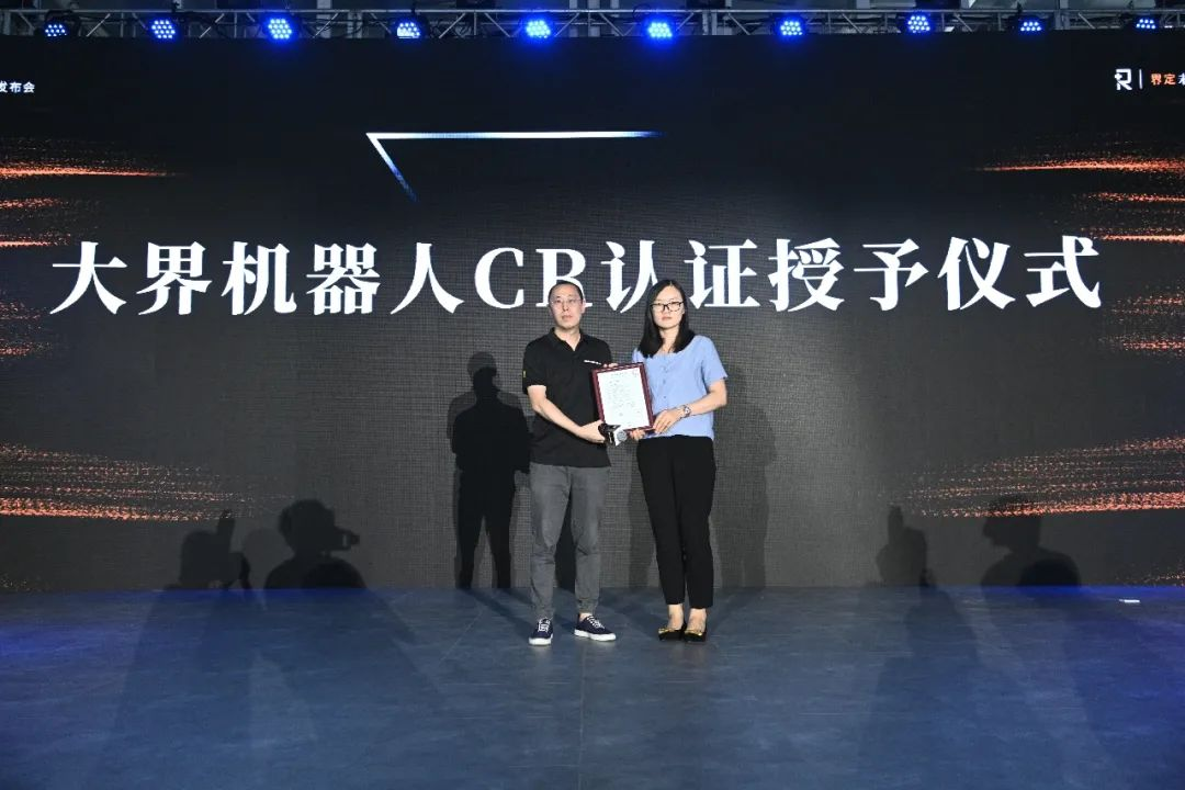 而在此次活动的最后一个环节中,机器人国评中心(总部)为大界建筑机器人移动底盘颁发CR产品认证证书,一方面这标志着大界的产品在安全性和可靠性等方面得到了国家权威机构的认可,另一方面CR认证对推动中国建筑行业的智慧转型和发展有着划时代的意义。