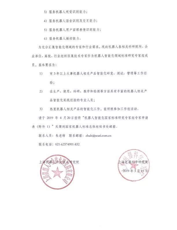 现邀请各位专家共同商讨机器人智能化国家标准。